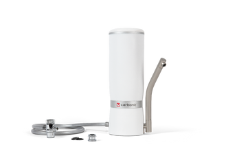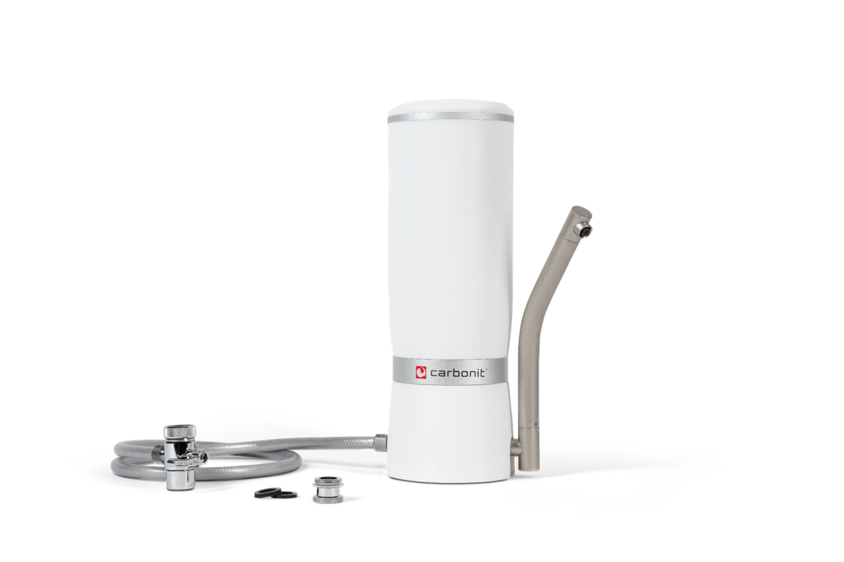 Der Carbonit SANUNO Grande ist ein leistungsfähiger Auftisch-Wasserfilter für die direkte Verbindung mit dem Wasserhahn. Durch das vergrößerte Filtergehäuse im Vergleich zum Standardmodell eignet sich das System ideal für Haushalte mit erhöhtem Wasserbedarf.